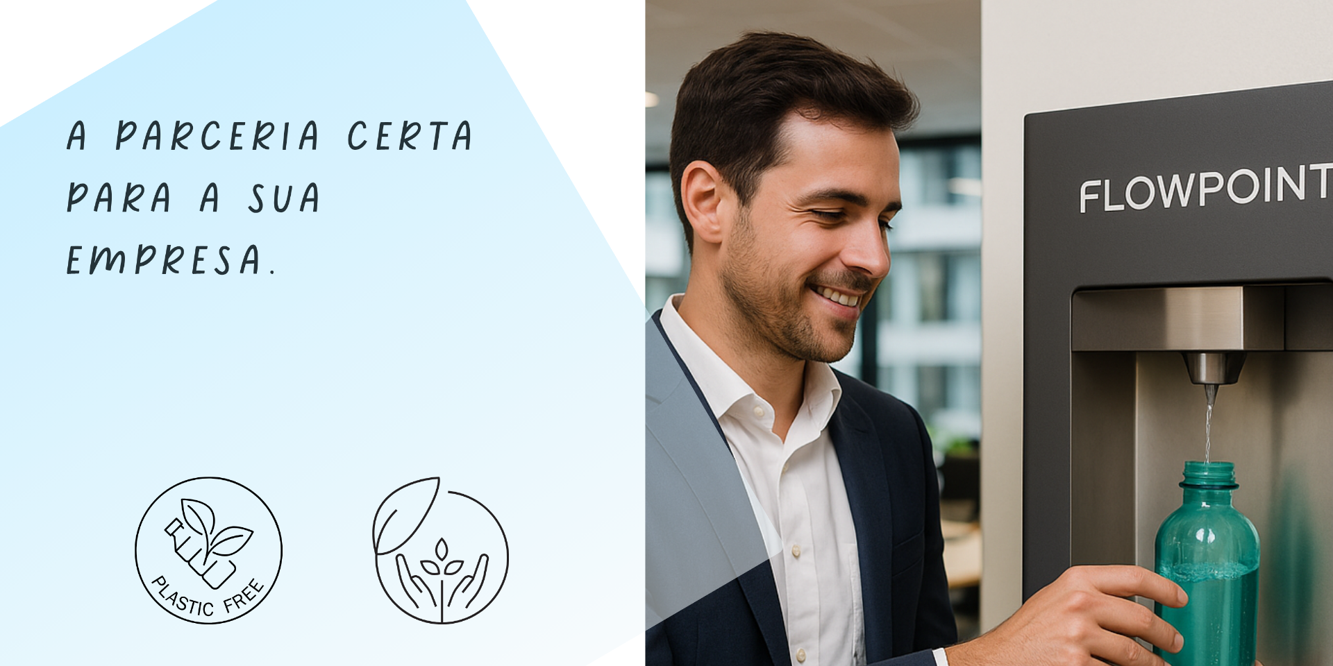 A FlowPoint oferece sistemas de água ligados à rede, com instalação simples e garrafas reutilizáveis, para empresas que querem cuidar do planeta e das pessoas.